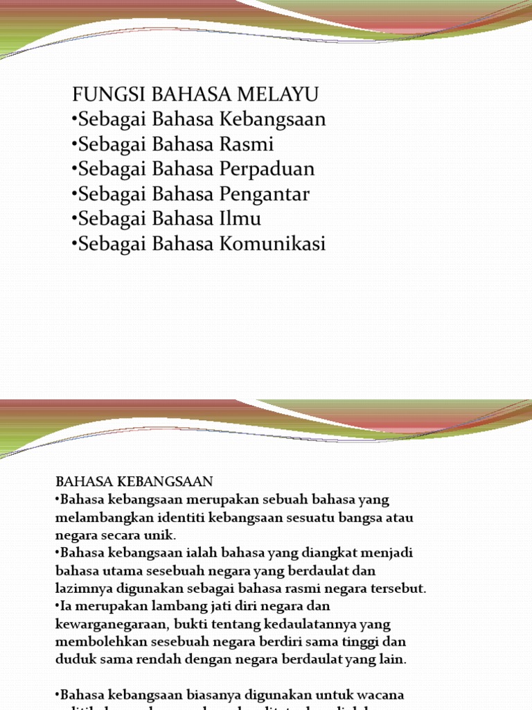 Mulanya, bahasa melayu digunakan sebagai alat komunikasi di lingkungan administrasi di masa pemerintahan kolonial belanda. Dalam pidatonya pada kongres nasional kedua di. Walhasil bahasa ini resmi menjadi bahasa indonesia. Sedangkan dalam kedudukannya sebagai bahasa negara, fungsi bahasa indonesia adalah sebagai bahasa resmi kenegaraan, bahasa pengantar bahasa indonesia yang dipakai sekarang berasal dari bahasa melayu. Bahasa indonesia adalah bahasa resmi republik indonesia dan bahasa persatuan bangsa indonesia.