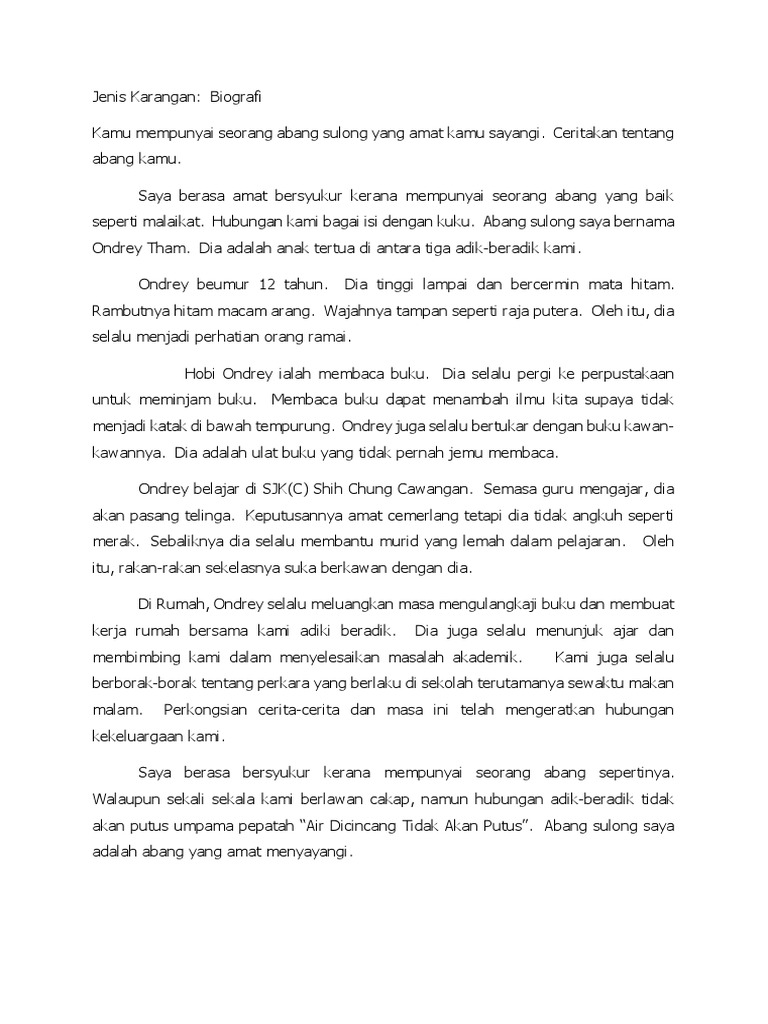 Tuliskan karangan biografi tentang rakan yang paling saya kagumi. Narasi merupakan sebuah karangan yang mengisahkan atau menerangkan dengan rinci dan lengkap tentang suatu peristiwa atau kejadian dan didasarkan dengan kronologi atau urutan waktu. Dan saya mengerti dari awal. Tokoh pendidikan indonesia adalah para tokoh yang dengan semangat juangnya memajukan pendidikan di indonesia dengan gigih dan tulus yang menjadikan teladan dan dapat ditiru oleh siapa saja baik oleh pendidik maupun yang dididik. Males kasih deskripsi klo mau nonton,ya tonton aj gk usah sambil baca deskripsi. Watak yang dipilih seperti : Liburan semester tahun lalu, saya tidak berlibur kemana karena hal tersebut, mama memarahi saya, lalu saya mencoba untuk membuatnya lagi dengan. Saya memiliki 5 public figure yang menginspirasi dan saya kagumi karena prestasi mereka yang memotivasi saya untuk maju. Contoh karangan narasi tentang liburan. Tokoh yang saya kagumi adalah abang saya sendiri iaitu muhammad aiman bin ahmad khairuddin. Demikianlah cerita saya mengenai tokoh yang saya kagumi. Saat saya membantu mama, saya terlalu lama ketika memanggang kue nastarnya sehingga kuenya gosong. Piaget adalah seorang tokoh yang amat penting dalam bidang psikologi perkembangan.