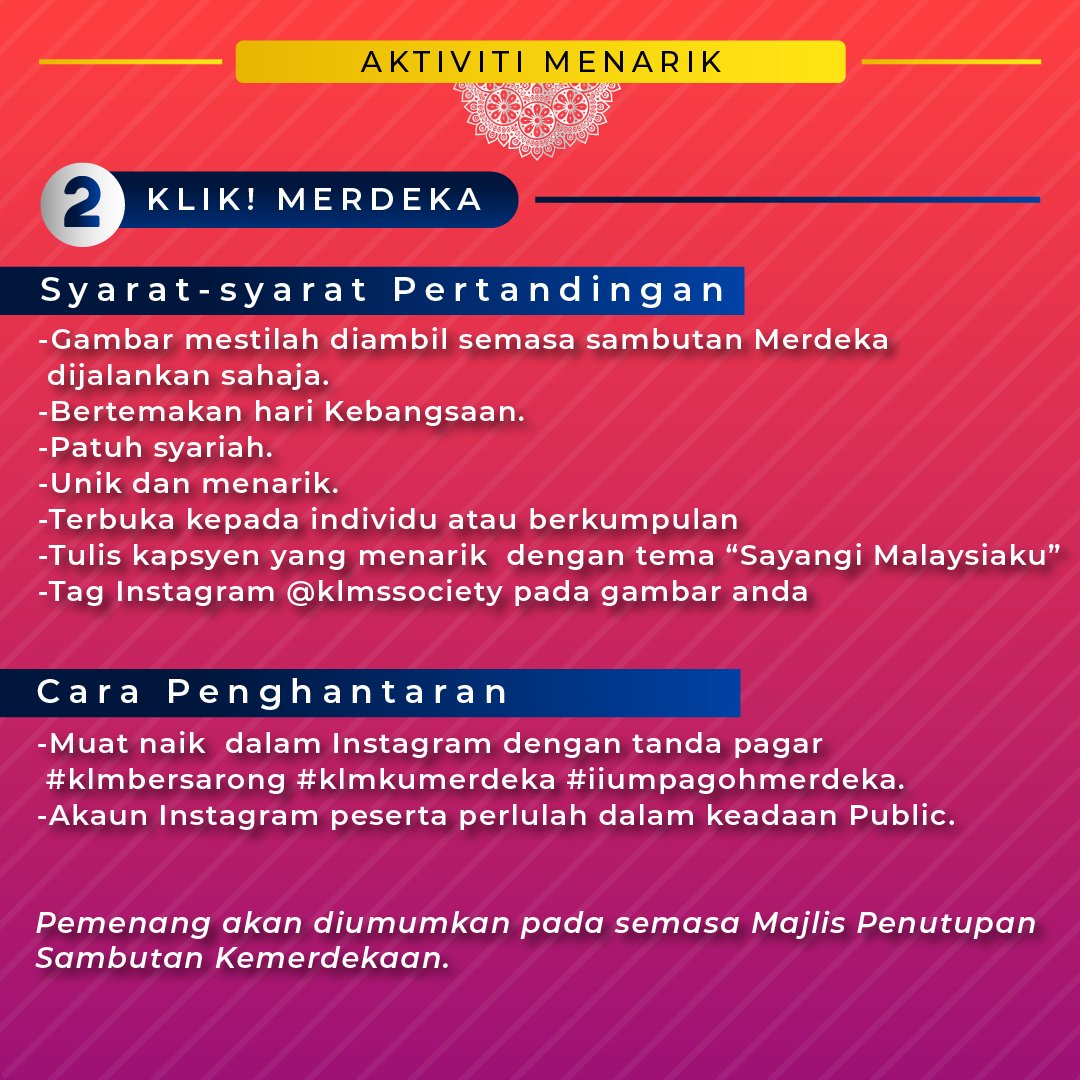 Related : Aktiviti Sambutan Hari Kemerdekaan - Aturcara Majlis Penutup Bulan Kemerdekaan - Dan actually aktiviti ni lagi best kalau office korang ada staff yang berbilang kaum..